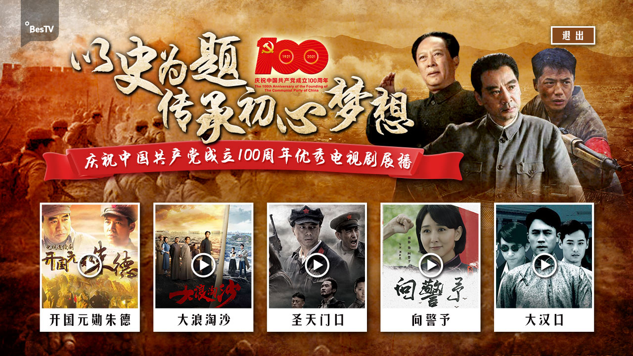 百视TV推出一批聚焦党史、新中国史、改革开放史、社会主义发展史,突出新时代的献礼佳作,包括《时间的答卷》、《播火1920》、《百年大党-老外讲故事》、《影像中的百年党史》、《理想照耀中国2》、《这就是中国》、《百炼成钢:中国共产党的100年》、《同心——永远和党在一起》等,深入挖掘各个历史时期伟大精神的丰富内涵和时代价值,凝聚立足新阶段、奋进新征程的强大力量,同时深化首页首屏首条建设,做到主题宣传内容“天天见、天天新、天天深”。