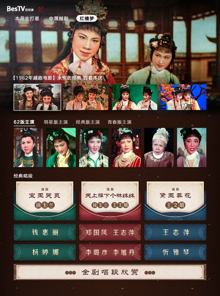 2016年开始,百视通就与上海越剧院开始“试水”传统戏曲和新兴媒体平台的结合,让戏院之花绽放荧屏。今年8月,著名越剧表演艺术家王文娟逝世,享年95岁,百视通在IPTV、OTT渠道推出《送别林妹妹》特辑,带领戏迷共同回味越剧女神的经典作品,还推出2018年独家拍摄制作的纪录片《王文娟党课》。