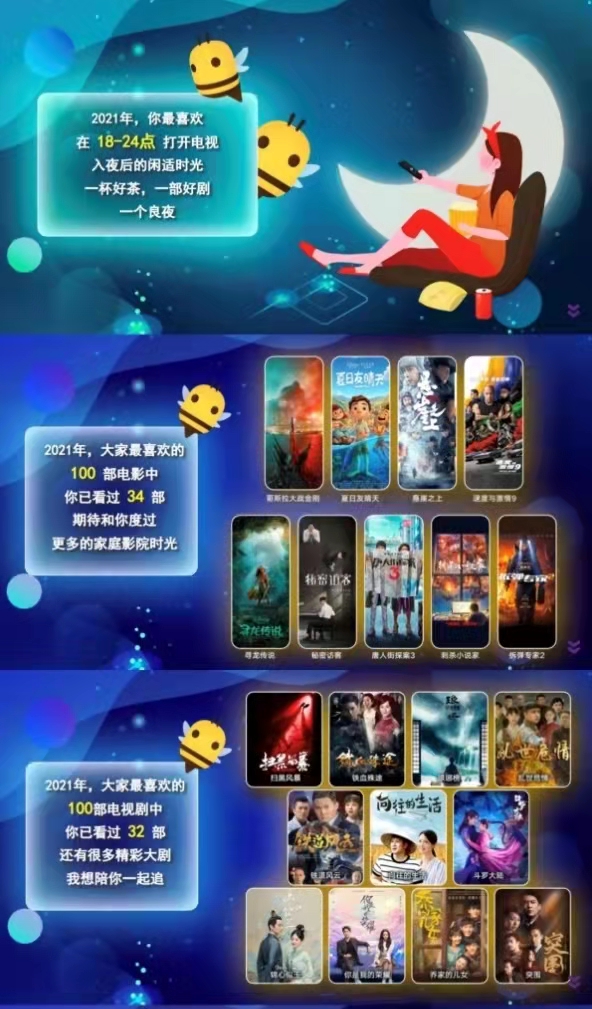 在每份个性化收视报告的最后,都能看到百视通写给每位上海IPTV用户的深情告白:“2021,我们相伴度过了无数美好的日夜。2022我们依然是你背后的一道光,为你消除疲惫、积蓄能量,让你在每一个平凡的日子里闪闪发光。”