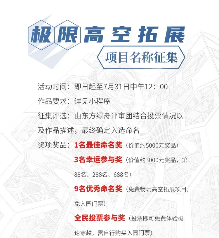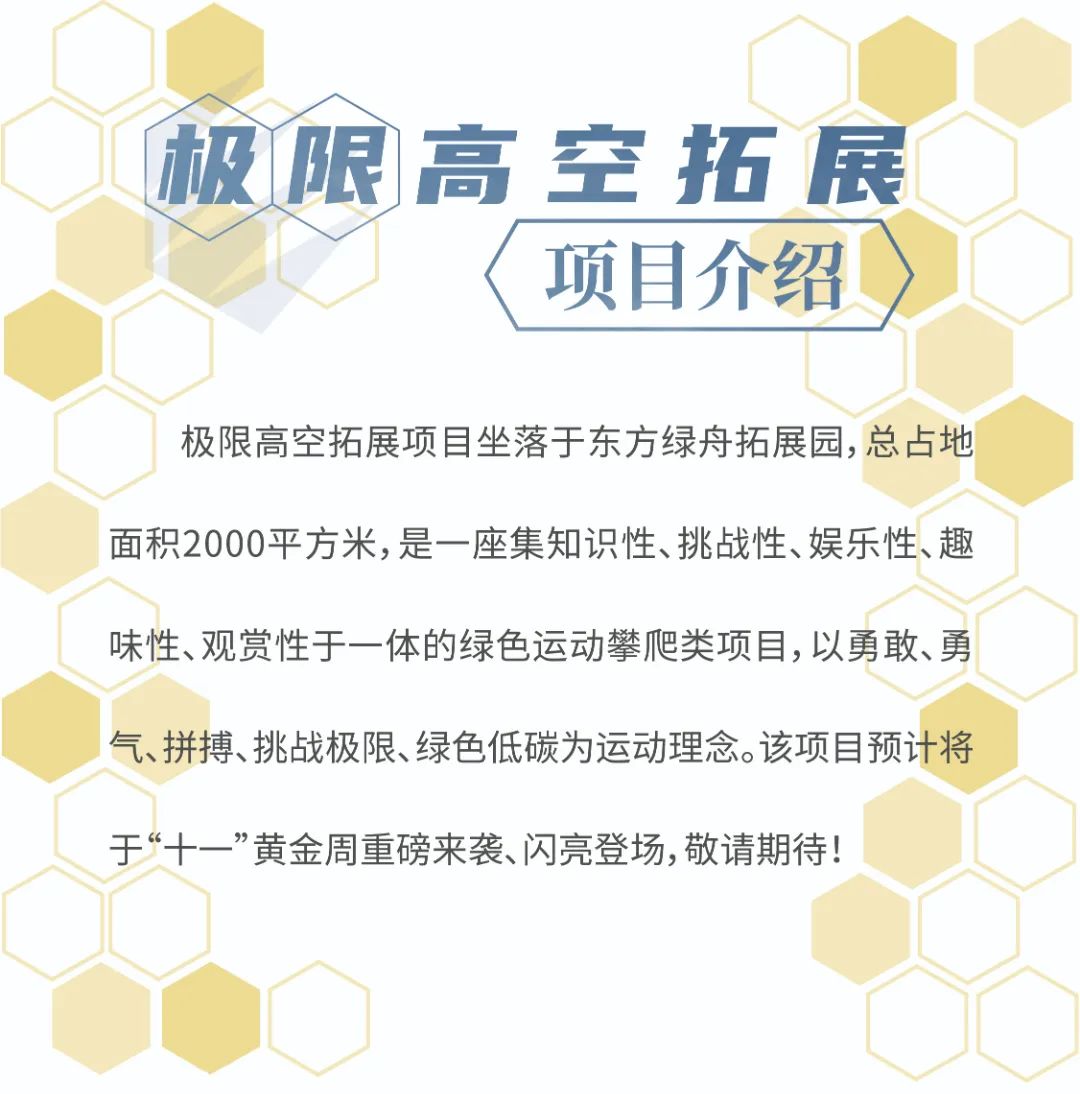 沪上文教事业和文化产业的经典地标,东方明珠新媒体旗下东方绿舟即将活力上新!一座总占地面积为2000平方米的极限高空拓展项目正在蓄力待发,预计将于今年国庆假期与广大游客见面。作为亚洲最大的单体无动力极限高空拓展设施,项目以勇气拼搏、挑战极限、绿色低碳为运动理念,全程设置超过200个关卡,包含高空赛道、宇宙探索、攀岩工厂、极速穿越等八大特色体验,将为这座广受市民游客喜爱的文旅休闲地再添精彩一笔。