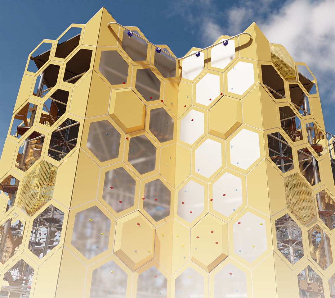 攀岩工厂,透明玻璃设计,室内场景尽收眼底,双侧攀岩赛道可任选进行挑战,每个选择都有不一样的风景和体验。